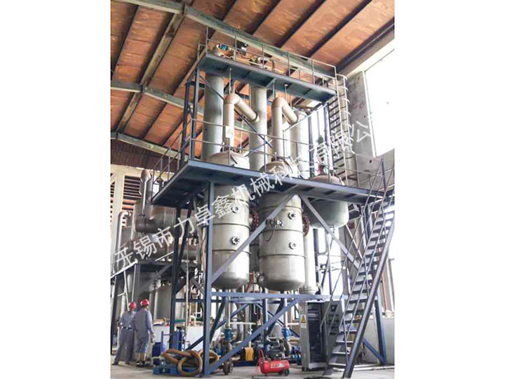 產品特點:降膜蒸發結晶器傳熱系數高,溫差小,真空蒸發。保證物料在換熱管內處于適宜的沸騰狀態,避免因劇烈氣化導致的干壁,結垢現象多效蒸發器